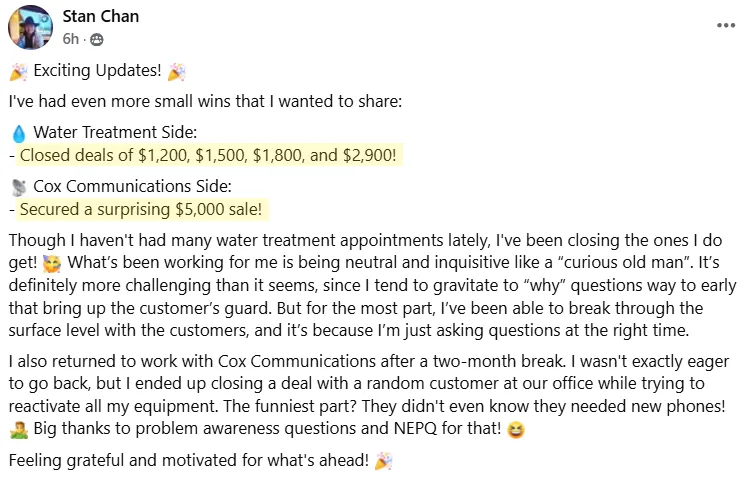 Yes. We work with both individual reps and entire sales organizations. On the assessment call, let us know you're looking at team training and we'll adjust the conversation to focus on implementation across your organization, training timelines, and leadership strategies.