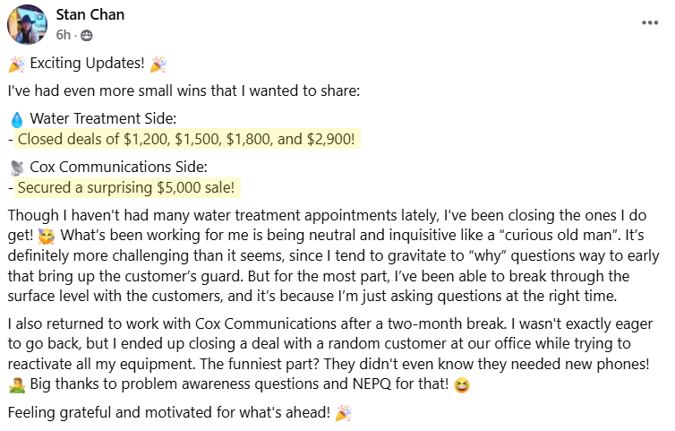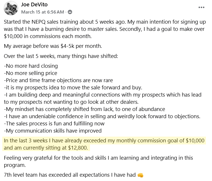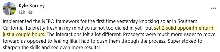 A community of driven people who are learning and applying NEPQ daily