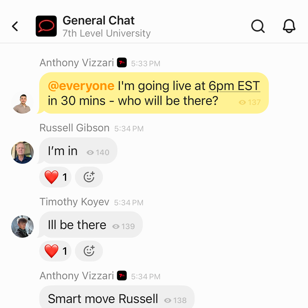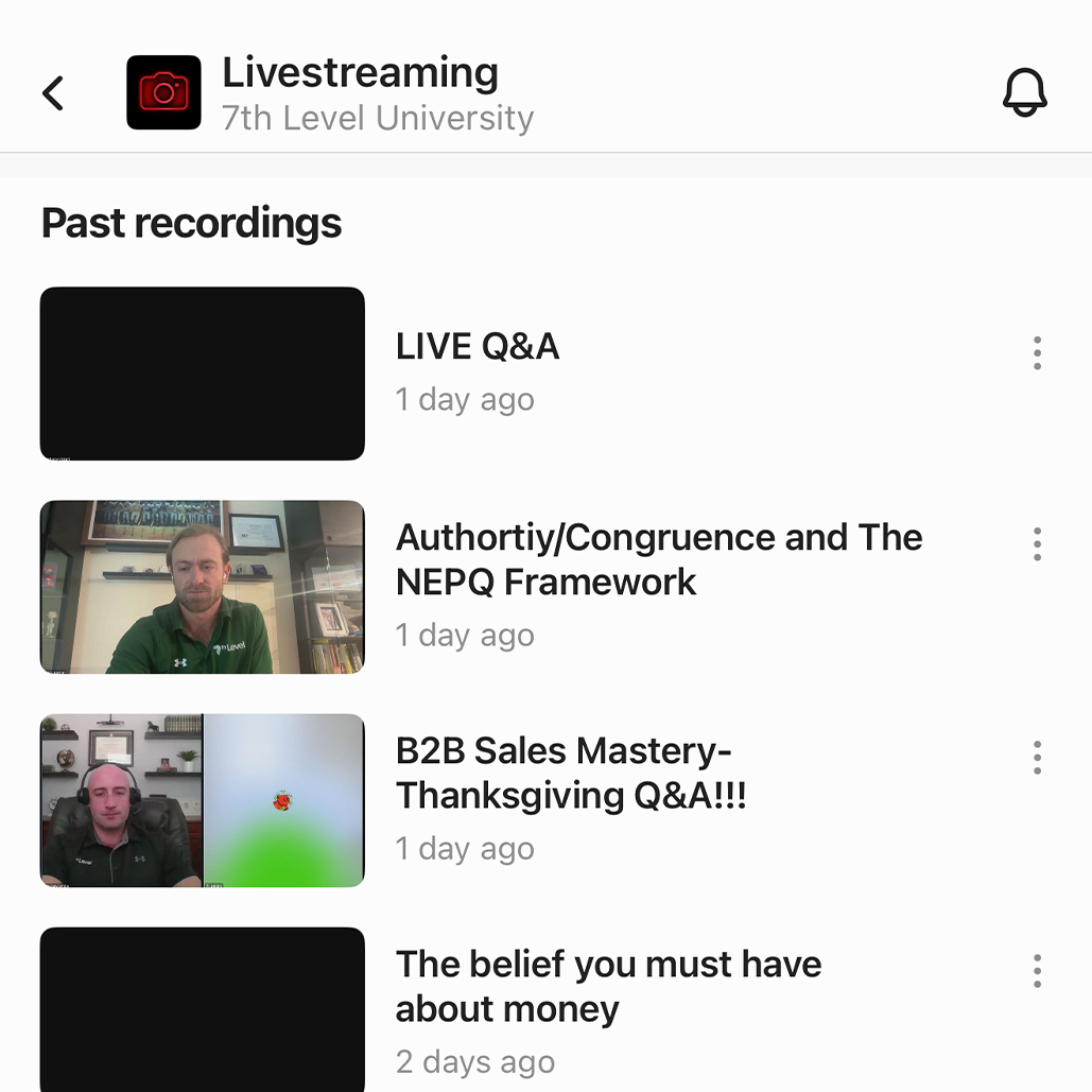 Daily live role-plays and sales training sessions that change based on what's working right now in the market. Jeremy randomly appears monthly to train directly with the community.