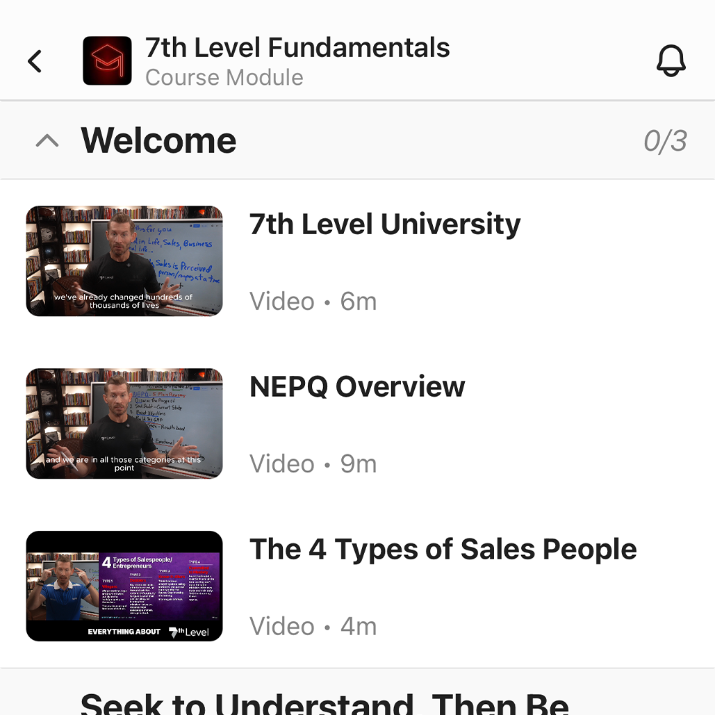 Access to the complete NEPQ methodology broken down into training modules you can learn and apply immediately